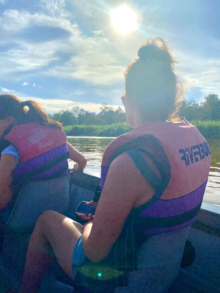 Ze zijn op zoek naar een jungle trekking. Ik raak aan de praat met de meiden en het klikt direct. Ze nodigen mij uit om mee te gaan. We vergelijken een aantal organisaties en komen uit bij River Junkie. Het is een van de meest bekende tourorganisaties dus we besluiten hiervoor te gaan. De maandag erna worden we opgehaald en rijden we ongeveer 2,5 uur met een minibusje richting de jungle. We arriveren we bij een soort van dock waar we uitstappen en in een bootje moeten overstappen. Er wordt gezegd dat het 2 minuten varen is, dit was geen leugen. Na amper 1,5 minuut komen we aan bij ons verblijf. Nadat we onze spullen in onze dorm hebben gelegd krijgen we een briefing over wat we gaan doen de komende dagen. De Jungle trekking bestaat met name uit het varen op de Kinabatangan River waar we een hoop dieren spotten zoals krokodillen, de neusaap, de kingfisher en uiteraard de Orang Oetan! Nu heb ik al heel wat aapjes in mijn leven gezien, letterlijk en figuurlijk maar dit was wel heel bijzonder hoor! We maken diverse jungle trekkingen om allerlei dieren te zien zoals spinnen, vogels, uilen, kikkers en wilde katten.