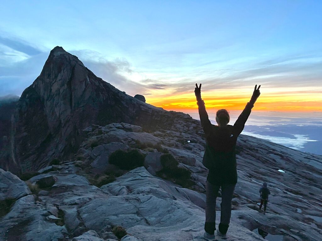 De rotsen worden steeds steiler en gelukkig zijn ook hier touwen om je zelf omhoog aan te trekken. Mijn pas vertraagd want hoe steiler het wordt hoe meer pijn ik krijg aan mijn kuiten. Ik moet vaker even op adem komen en loop nu alleen met de gids. Het begint ook steeds kouder te worden en er staat een stevige wind. Ik besluit mijn jas aan te doen want die had ik uiteraard nog niet aan. We komen aan bij het laatste stuk, ik stop en kijk omhoog. Ik zie een flinke partij rotsen voor mij en ik weet dat dit echt serieus klimmen gaat worden. Ik moet vaak stoppen vanwege de duizeligheid en net als ik er bijna ben hoor ik de twee meiden weer naar beneden komen. Ze gaan op zoek naar een mooie plek voor de zonsopgang. Na een 40 minuten klimmen behaal ook ik de top! Het is een krappe bedoeling op de summit en je kunt er niet lang verblijven, enkel voor het maken van een foto. De gids en ik besluiten weer direct naar beneden te gaan vanwege de kou en de wind. Langzaam komt de zon op en sta ik even stil bij het moment. Daar sta ik dan weer op de top van een berg.