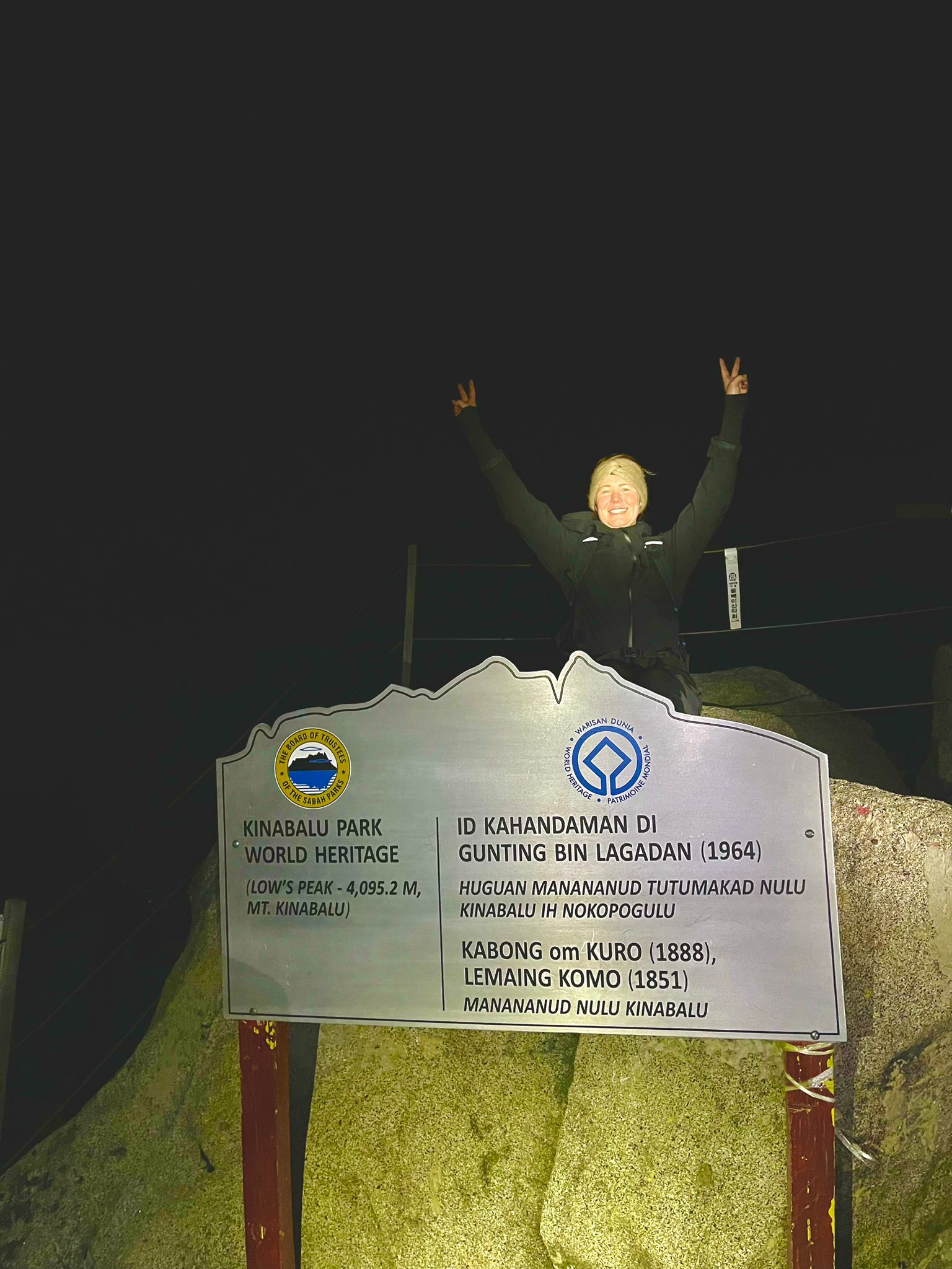 De rotsen worden steeds steiler en gelukkig zijn ook hier touwen om je zelf omhoog aan te trekken. Mijn pas vertraagd want hoe steiler het wordt hoe meer pijn ik krijg aan mijn kuiten. Ik moet vaker even op adem komen en loop nu alleen met de gids. Het begint ook steeds kouder te worden en er staat een stevige wind. Ik besluit mijn jas aan te doen want die had ik uiteraard nog niet aan. We komen aan bij het laatste stuk, ik stop en kijk omhoog. Ik zie een flinke partij rotsen voor mij en ik weet dat dit echt serieus klimmen gaat worden. Ik moet vaak stoppen vanwege de duizeligheid en net als ik er bijna ben hoor ik de twee meiden weer naar beneden komen. Ze gaan op zoek naar een mooie plek voor de zonsopgang. Na een 40 minuten klimmen behaal ook ik de top! Het is een krappe bedoeling op de summit en je kunt er niet lang verblijven, enkel voor het maken van een foto. De gids en ik besluiten weer direct naar beneden te gaan vanwege de kou en de wind. Langzaam komt de zon op en sta ik even stil bij het moment. Daar sta ik dan weer op de top van een berg.