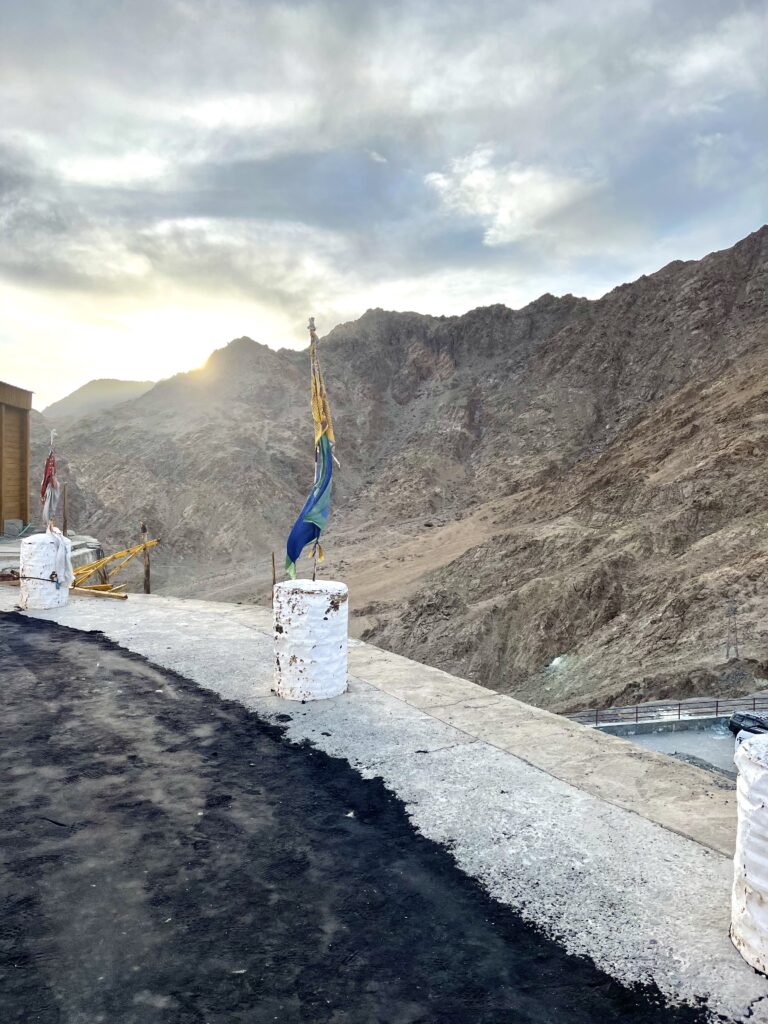 Yes, het is zover! Eindelijk voel ik dat ik weer klaar ben om echt te gaan reizen nadat ik drie maanden in het noorden van Thailand ben geweest. Ik ben op weg naar Ladakh, Leh het noorden van India. Deze plek wil ik al heel lang bezoeken en ik zou er eigenlijk in januari naar toe gaan maar toen had ik besloten dat ik terug naar Nederland kwam. De vlucht alleen al is prachtig en dat is te merken en de rumoerigheid in het vliegtuig als iedereen van plaats begint te wisselen. We vliegen over de bergen vol met sneeuw in Ladakh en het is werkelijk prachtig. De landing is overigens niet zo prachtig want door de bergen, het hoogteverschil en de korte landingsbaan is het erg onstuimig. Aangekomen op de luchthaven zie ik direct dat het ophalen van mijn backpack van de bagageband onmogelijk is. In India is het gebruikelijk dat iedereen voordringt. Iedereen staat letterlijk tegen de bagageband aangeplakt en er is duidelijk geen plek meer voor mij. Ik wacht samen met een koppel dat ik ontmoet heb tijdens de vlucht en we wachten rustig af. Als er een gaatje vrijkomt haast ik mij naar de band en kort erna zie ik mijn backpack. Toch altijd een fijn gevoel.Ik loop naar buiten en zie een man staan met een velletje papier met mijn naam erop. Yes, dat ben ik en ik zwaai uitbundig naar de man. We lopen naar de auto en ik merk na tien passen al dat ik opeens begin te hijgen, de man lacht naar mij en zegt: “je weet toch wel dat we hier al op meer dan 3500 meter zitten”. Ja, zeg ik snakkend naar lucht en pas meteen mijn looppas aan.