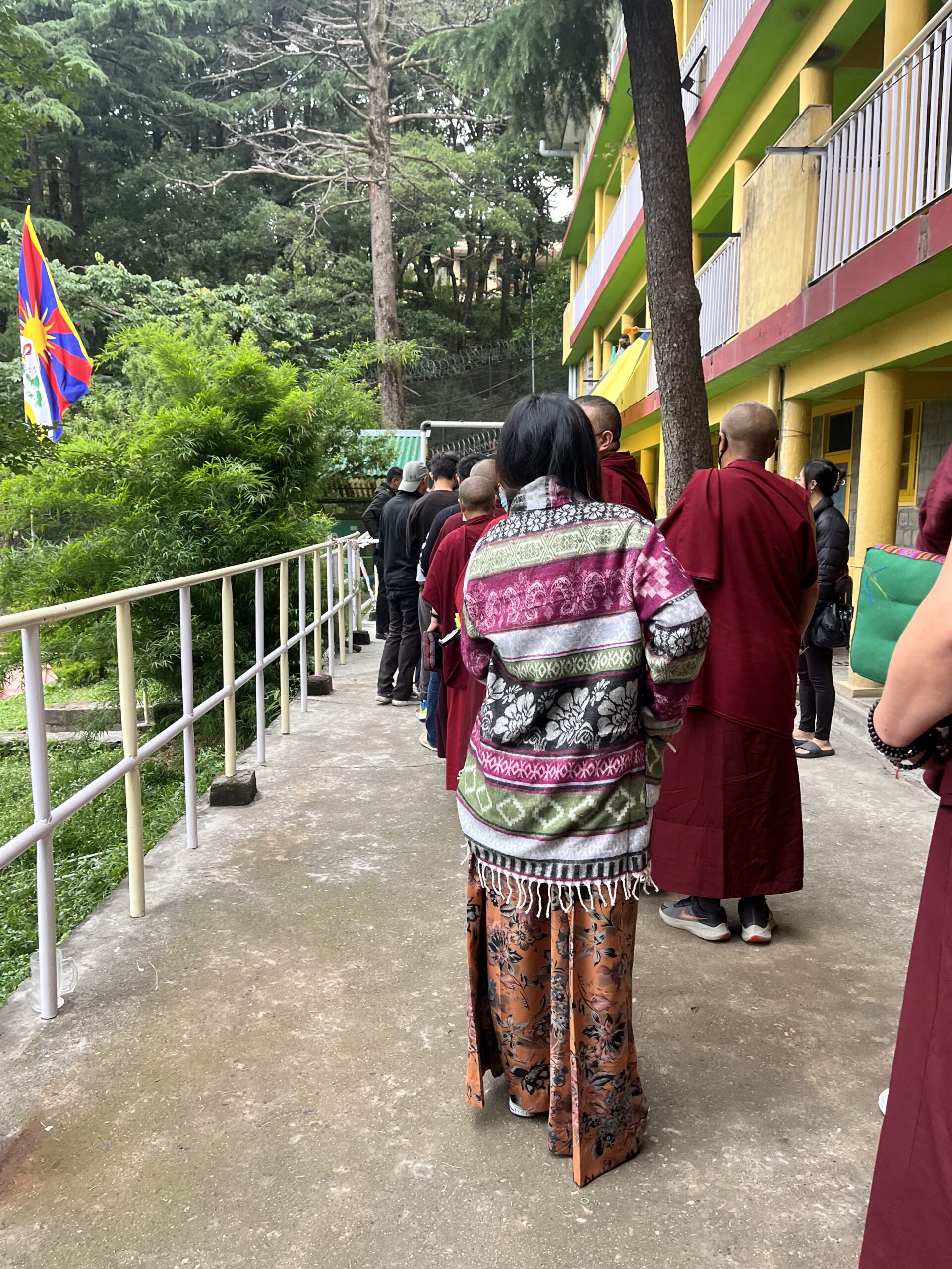 1,5 week erna besluit ik om naar Dharamshala te gaan, dit is de thuisbasis van de Dalai Lama en ik heb gelezen dat hij toevallig daar is en twee teachings zal geven in de Tibetaanse tempel. Hier MOET ik bij zijn denk ik! De enige manier om daar te komen vanuit Leh is met een gezamenlijke taxi ( 12 uur) naar Manali om dan vervolgens een bus te nemen naar Dharamshala ( 8 uur). Zo gezegd, zo gedaan, we delen de taxi met een Indiaas gezin, een Indiase man en twee reisgenoten die ik eerder heb ontmoet in Leh. Erg luxe is het niet maar dit hoort dan ook wel weer bij het reizen. Na circa zes uur rijden komen we opeens in een file te staan?! We zitten inmiddels op 4500 meter hoogte of hoger in de bergen maar er is een file. Ik geloof mijn ogen niet. Al snel krijgen we door dit een serieuze roadblock is waarbij het verkeer al 48 uur stilstaat omdat men vanuit beide richtingen is gaan rijden. Christa en Alfredo beseffen al snel dat wij voorlopig nergens naar toe gaan. Zij besluiten direct om een slaapplek te regelen hier ( lees: een hutje met golfplaten en een deken) ze denken dat deze namelijk zo vergeven zijn met al deze mensen hier. Ik besluit daarop nog bij de rest te blijven en te wachten in de auto. De chauffeur heeft immers aangegeven meteen te willen gaan rijden zodra het kan. Na uren in de auto besluit ik mij aan te sluiten bij Christa en Alfredo. Het is inmiddels al bijna 18:00 uur en zie geen vooruitgang. We spreken overigens ook met het leger, zij geven aan dat niemand gaat rijden vanavond. We vinden een fijne plek om te overnachten en zien de humor er wel van in. We lachen, maken vrienden en eten samen. Wat een avontuur denk ik lachend!