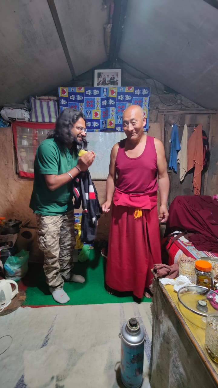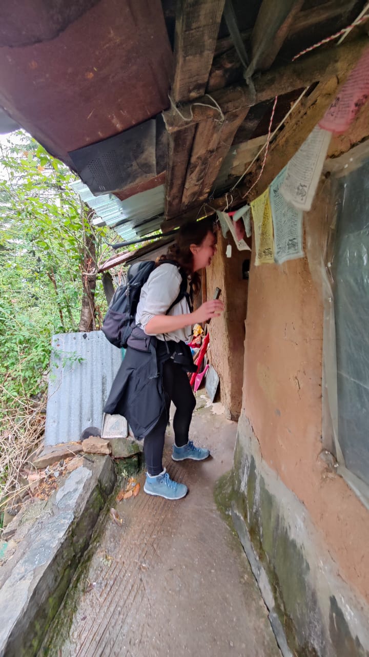 Er rest mij nog een ding, de paraplu terugbrengen naar de monk. Naval en ik ( jongen die ik heb leren kennen in (Dharamshala) gaan samen op pad om het hutje terug te vinden in het bos. Naval loopt met mij mee omdat hij bang is dat ik anders weer zal verdwalen. We vinden het hutje! Ik klop aan en de Monk is verrast mij te zien, hij nodigt onze beide direct uit voor een kop thee en ook Naval vindt dit wel heel bijzonder.
